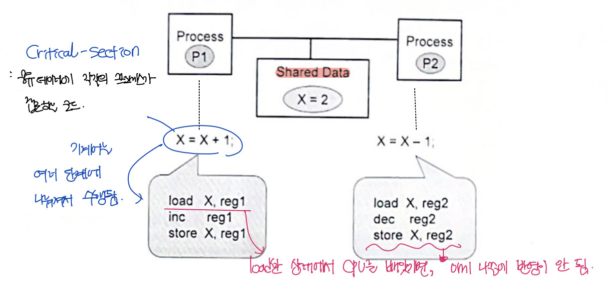 - Problem: 공유데이터(shared memory)의 동시 접근은 데이터 불일치 문제(inconsistency)를 발생시킬 수 있다.