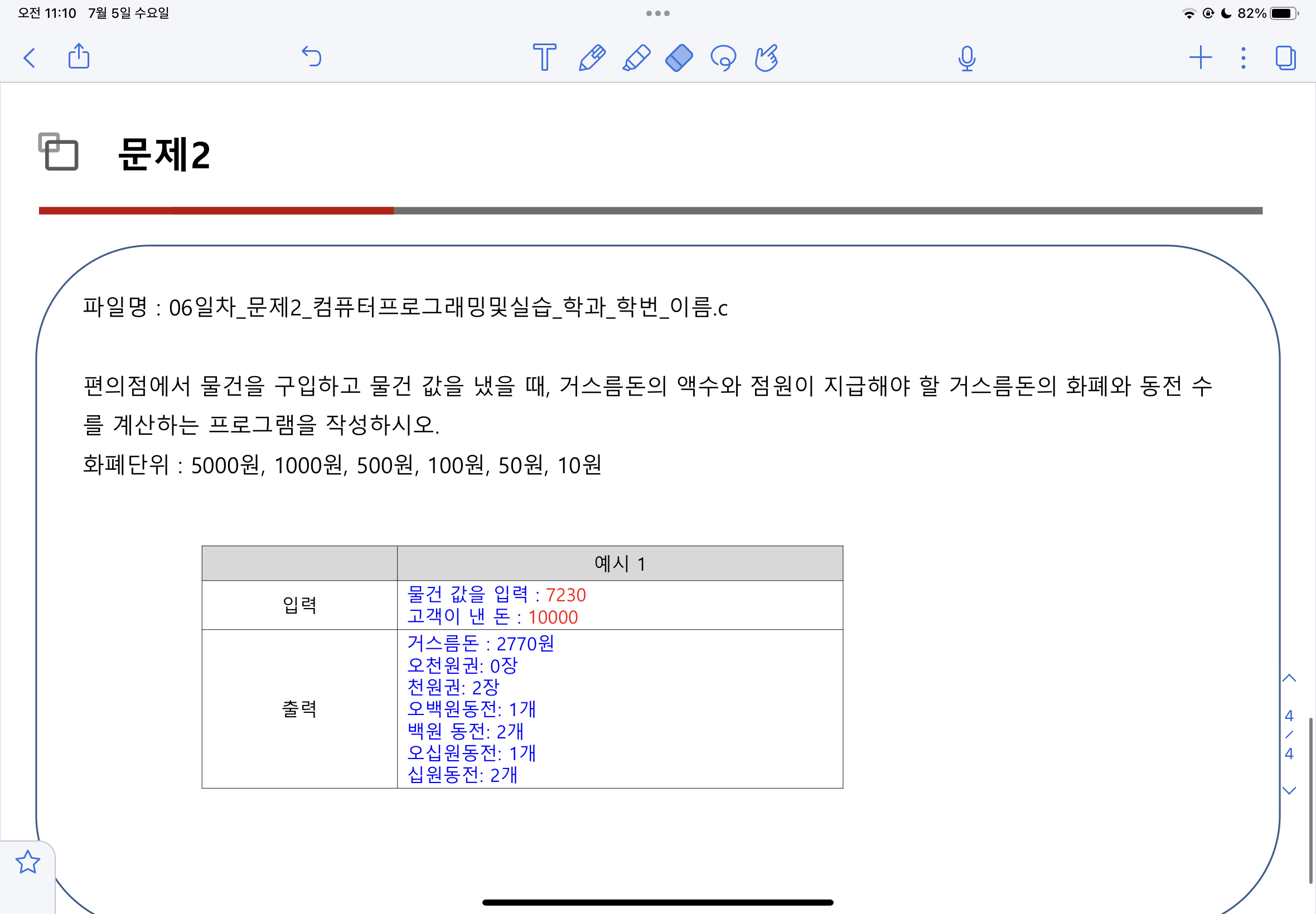 /*거스름돈 계산 프로그램*/