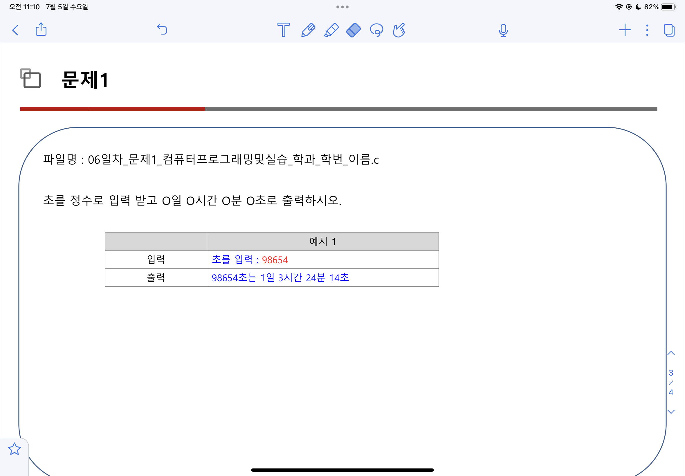 printf("%d초는 %d일 %d시간 %d분 %d초\n", totalSec, day, hour, min, sec);
