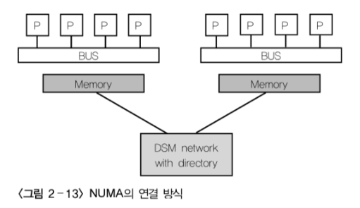 NUMA는 멀티 프로세싱 시스템에서 지역적으로는 메모리를 공유하며, 성능을 향상시키고, 시스템 확장성이 있도록 마이크로프로세서 클러스터를 구성하기 위한 방법이다.