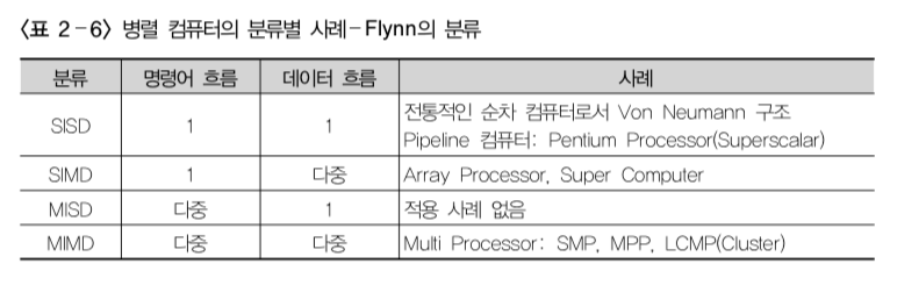 병럴 처리에는 파이프라이닝, 슈퍼스칼라 등의 명령어 전달 방식 차이가 있고, 병렬 컴퓨팅 방식으로 SMP, MMP, LCMP 등이 있다.