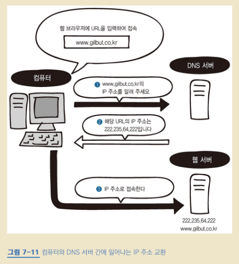 - 도메인 이름: gilbut.co.kr과 같이 컴퓨터나 네트워크를 식별하기 위해 붙여진 이름