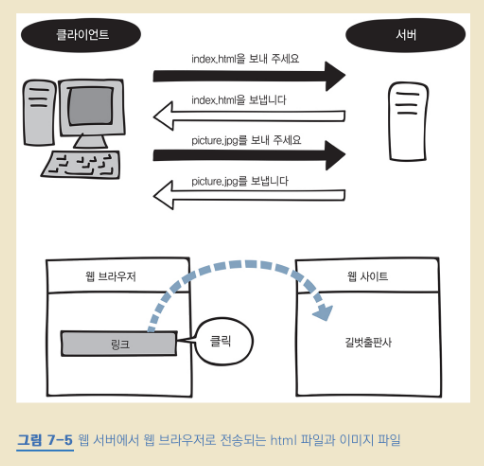 - 클라이언트(웹 브라우저): HTTP 요청(request)
