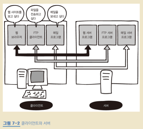 - 서비스를 요청하는 측을 클라이언트(client), 서비스를 제공하는 측을 서버(server)라고 한다.