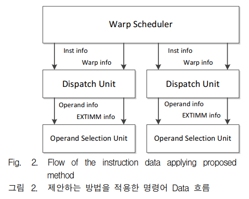본 논문은 그래픽 처리 뿐 만 아니라 범용 연산의 가속화를 지원하기 위한 SIMT 구조 GP-GPU의 Dispatch Unit과 Operand Selection Unit을 제안한다. Warp Scheduler로부터 발행된 명령어에서 사용되는 Operand의 모