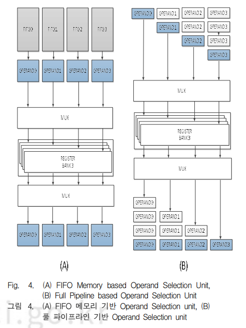 - FIFO Memory based Operand Selection Unit보다 처리 속도는 많이 느려지지 않지만, 추가적인 FIFO를 필요로 하지 않아 자원 소비량이 적다.