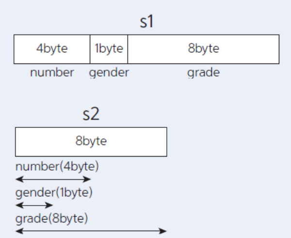 - 같은 구조체 변수끼리 대입은 가능하지만, 비교는 불가능하다.