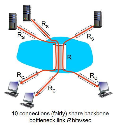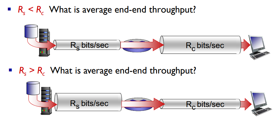 - End-end throughput: min(Rc, Rs, R/10)