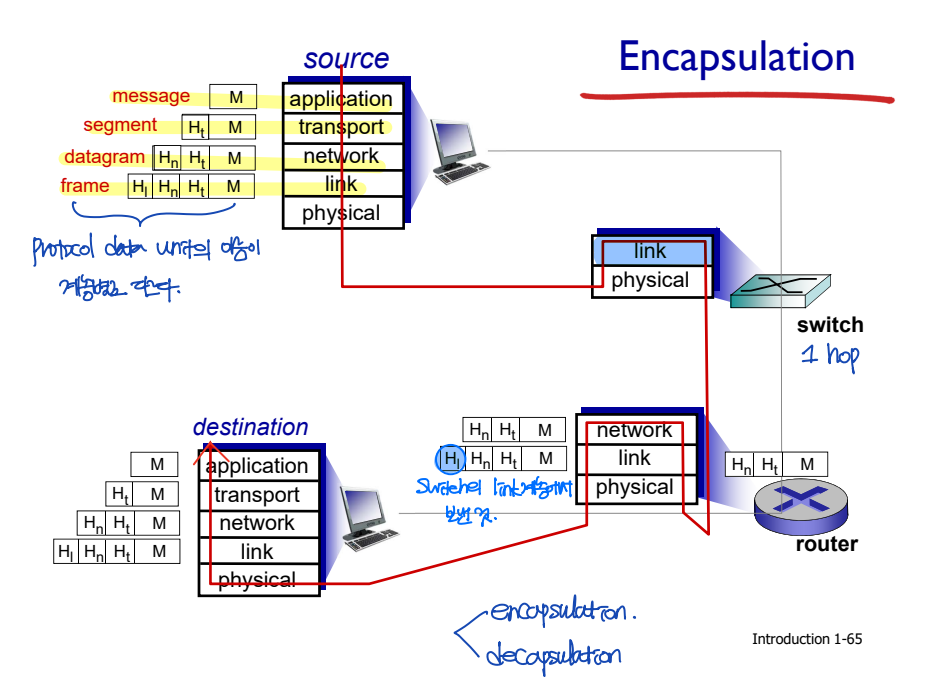 ▷ 어떤 계층 앞의 헤더는 앞선 source/switch/router/destionation의 동일 계층에서 보낸 것이다.