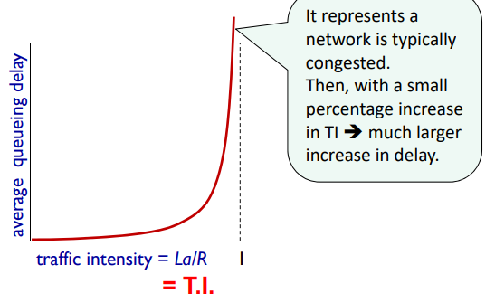 - La/R = Average rate at which bits arrive at the queue (bps)/the rate at which bits are pushed out of the queue (bps)