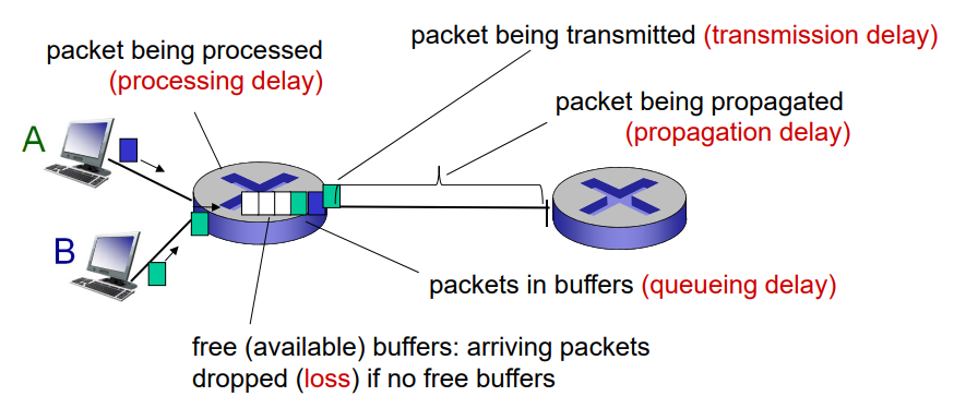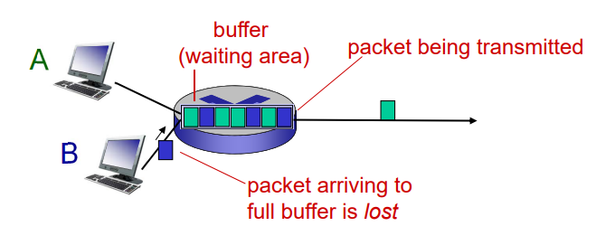 --> Packet arriving to full queue dropped (aka lost). - Lost packet may be retransmitted by previous node(loss 복구), by source end system, or not at all.