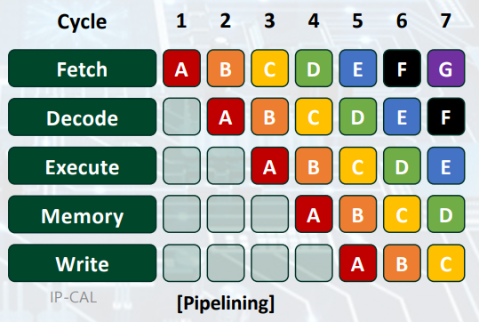 : The actions requred to execute an instruction are partitioned into different steps and the processor hardware is organized as a series of stages, each performing one of these steps.