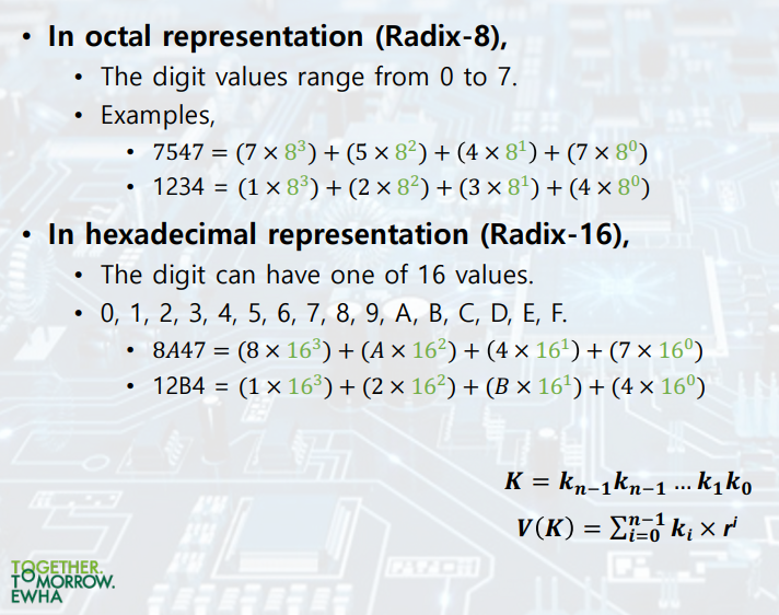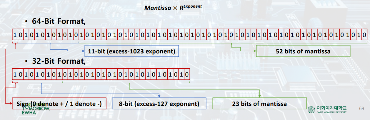: Floating-point representation in which numbers are represented by a mantissa comprising the significant digits and an exponent of the radix R.