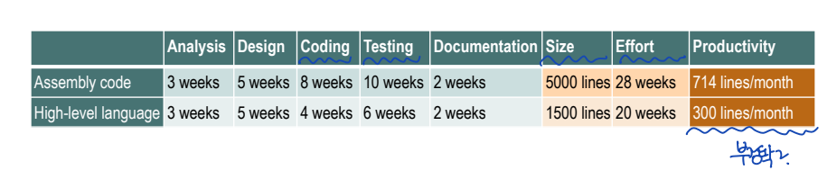- 동일한 기능을 구현할 때, 고급 언어 코드 크기 < 저급 언어 코드 크기