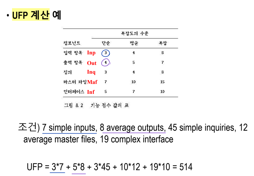 - 외부 입출력, 사용자 상호작용, 외부 인터페이스, 시스템에서 사용하는 파일 - 각각의 연관된 가중치가 존재한다.