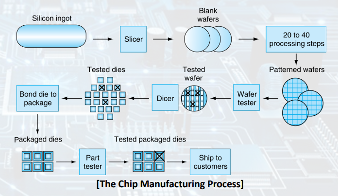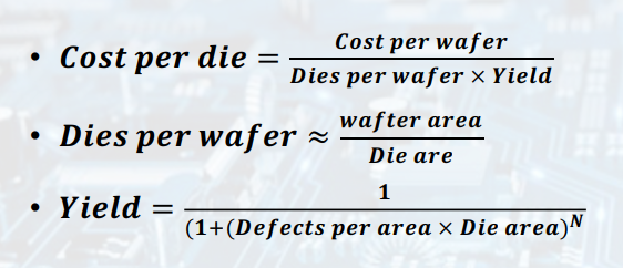 - Yield (수율): proportion of working dies per wafer.
