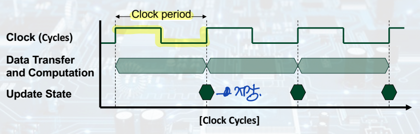 - Clock period: Duration of a clock cycle.