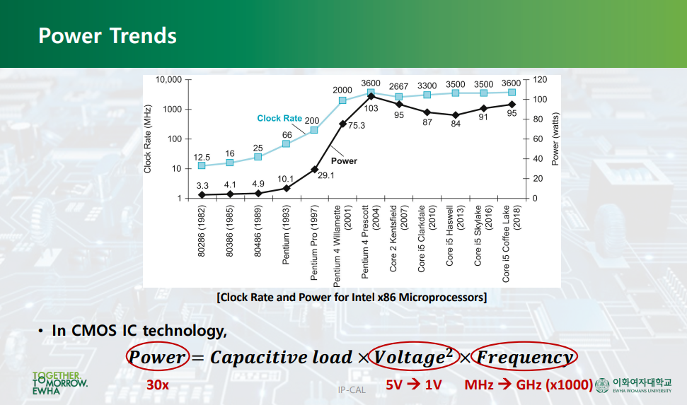 - Clock Rate ↑ (= Clock Frequency ↑)