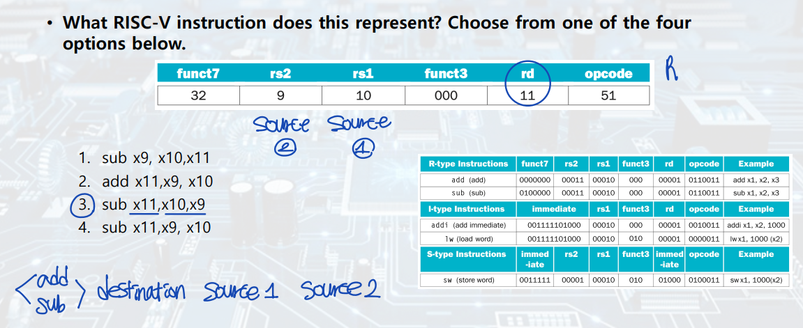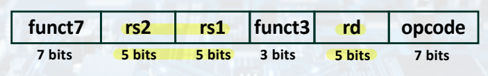 ▶ rd, rs1, rs2: $x0~$x31(32가지) --> 5-bit