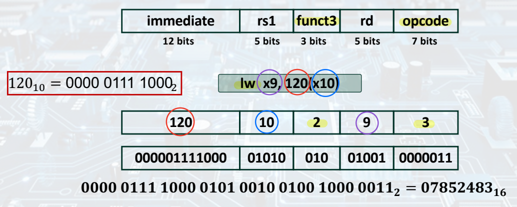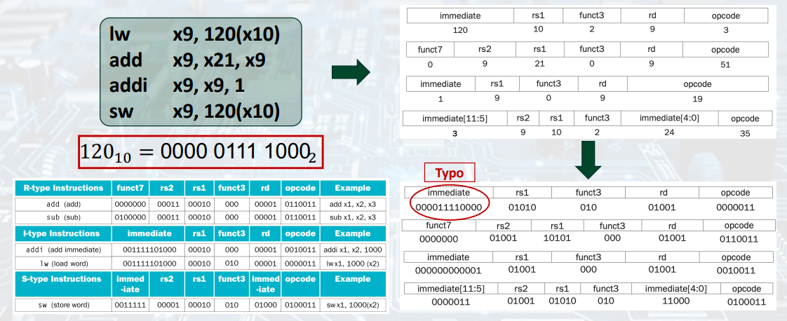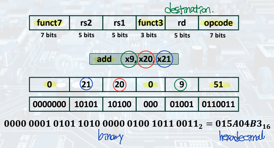 - RISC-V instructions: Encoded as 32-bit instruction words.