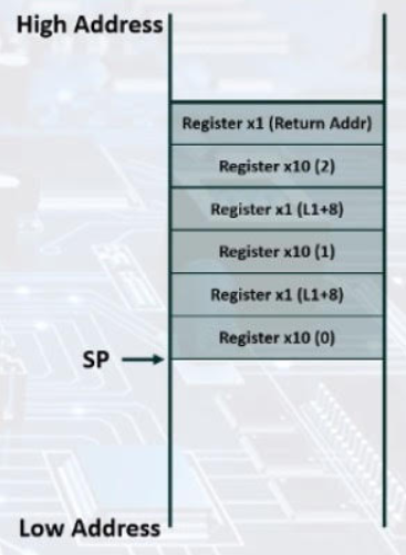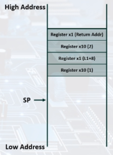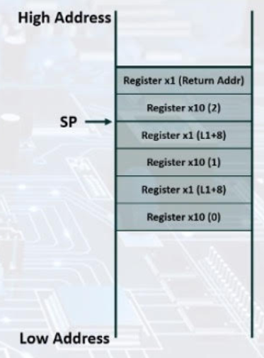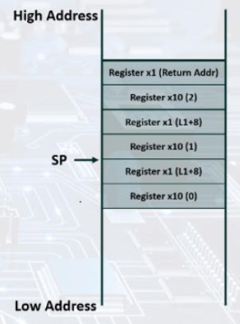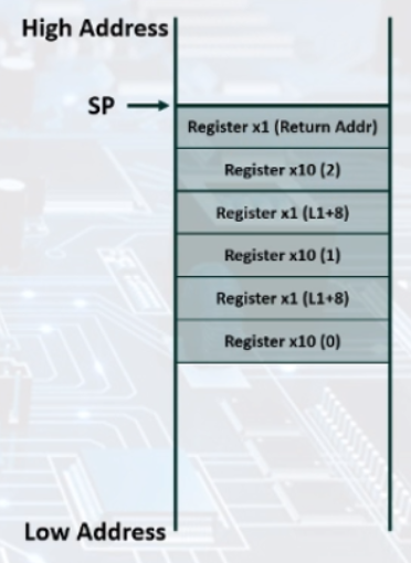 lw x10, 0(sp) // x10 = 2 (stack에 저장된 x10값이 2였음)