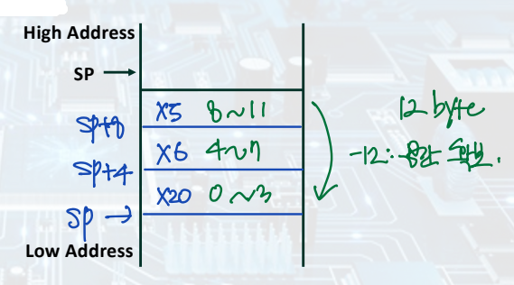 addi sp, sp, -12 // stack에 12 byte 공간 확보