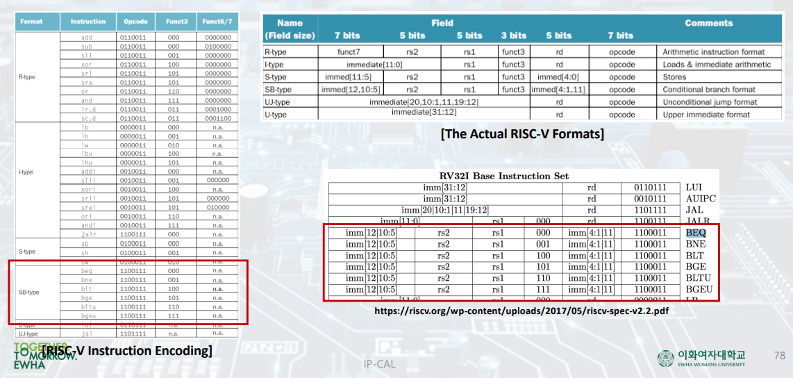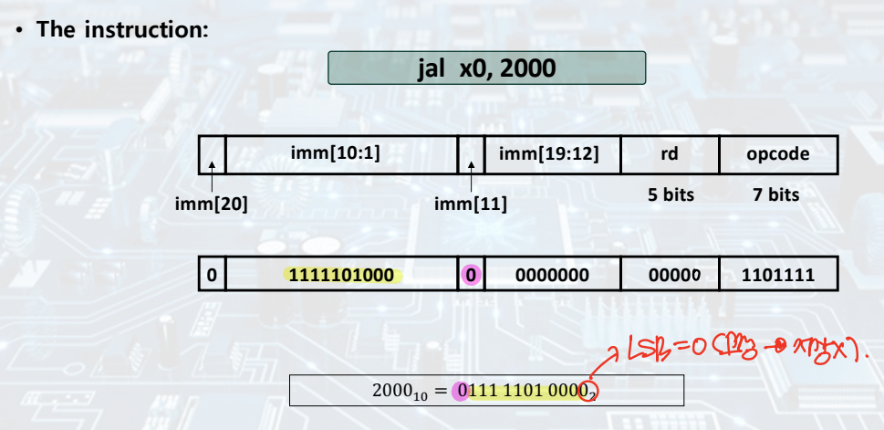 Target address = PC + immediate * 2 (LSB = 0으로 고정하기 때문)