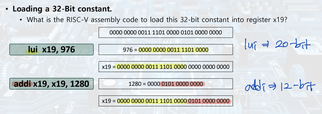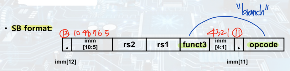 - immediate: 12-bit --> -2^11~(2^11 - 1)