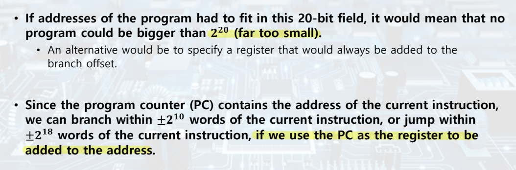 --> PC(현재 사용하는 instruction)을 기준으로 얼마나 jump?