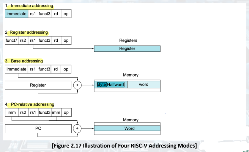 - PC-relative addressing: beq, bne --> PC + offset(immediate)