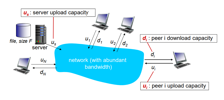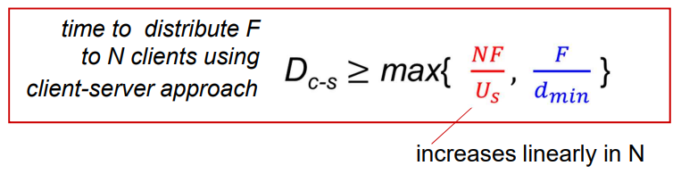 Clinet-Server 파일 분배에서 server는 파일 복사본을 각 피어들에게 보내야 한다. (server에게 커다란 부하를 주고, 많은 양의 서버 대역폭을 소비한다.)