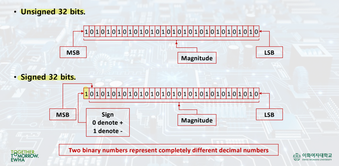 - Saturating operations --> Overflow 발생하면, 표현 가능한 가장 큰 양수로 표현한다.