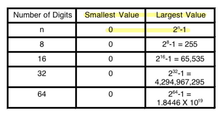 Range of Unsigned Binary Numbers