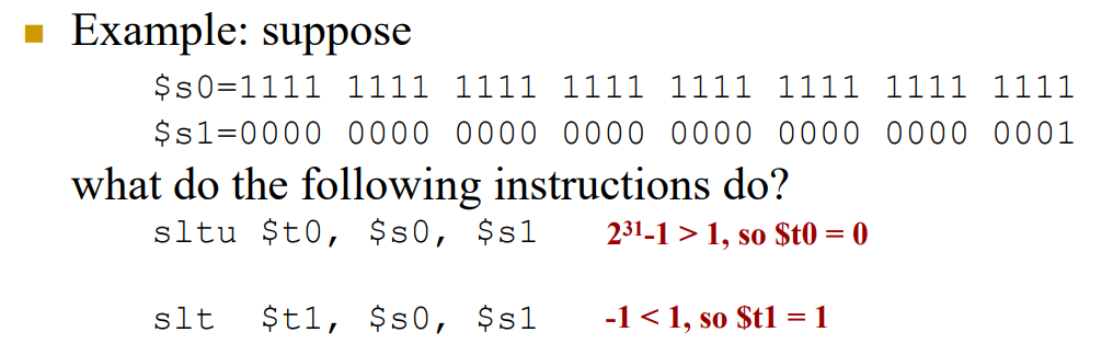 - sltu (Set Less Than Unsigned): unsigned comparison