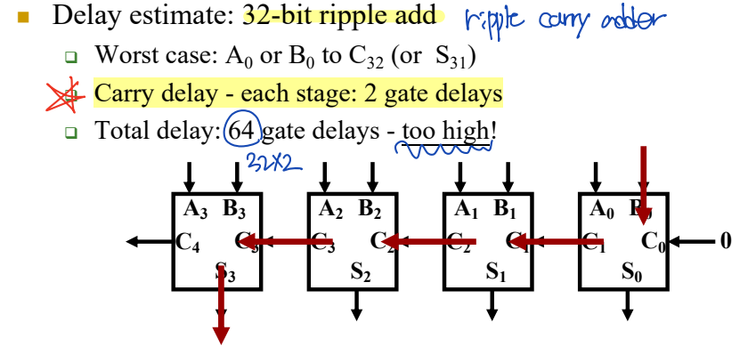 32-bit를 계산하기 위해서는 2*32 gate delay가 소요되겠지요.