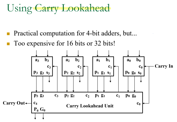 - Group-Lookahead: Add another level of CLA(Carry Lookahead Adder)