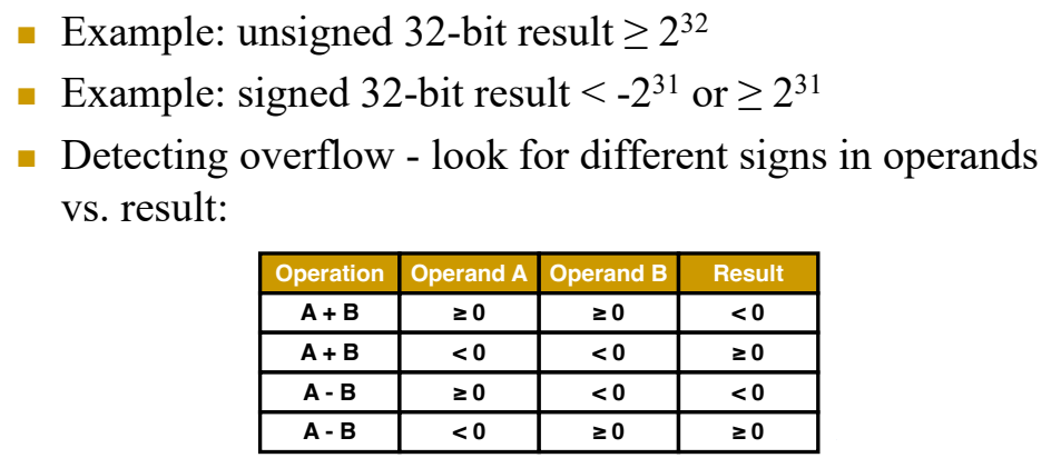 ▶ Overflow occurs when not enough bits are available to represent the result.