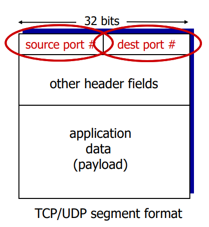 - 각 세그먼트는 세그먼트가 전달될 적절한 소켓을 가리키는 필드를 갖는다.
