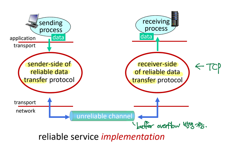 Application layer 입장에서 reliable channel에서의 전송과 같은 reliable data transfer을 하려면,