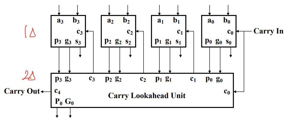 - 4-bit 단위로: 1 gate delay + 2 gate delays