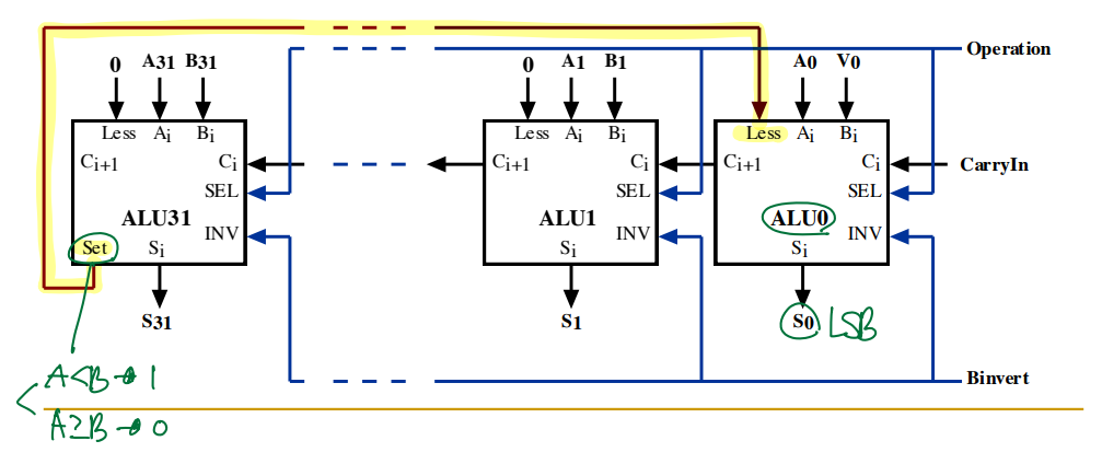 --> Set = 1이면, A-B<0이라는 뜻! --> Lessi = 00...01로 설정한다.