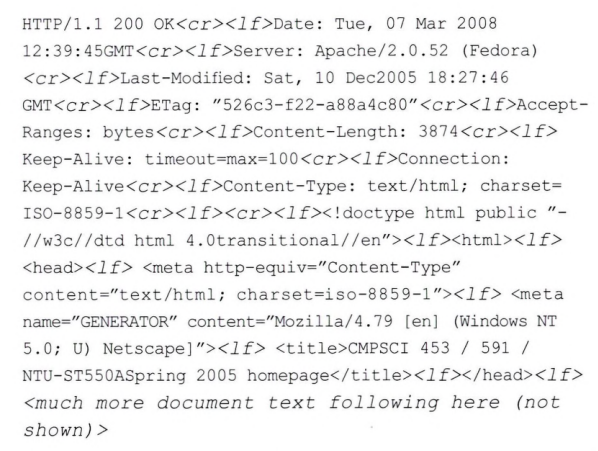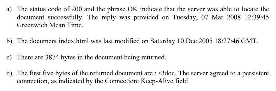 P5. 다음 텍스트는 위 문제의 HTTP GET 메시지에 대한 서버로부터의 응답이다. 답을 아래 메시지에 표시하여 다음 질문에 답하라.