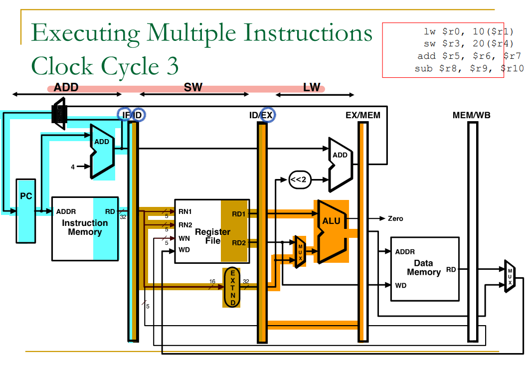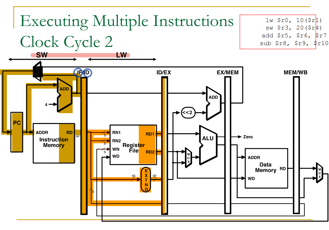 - Pipelining overhead: pipeline register (multiple instruction의 buffer 역할을 한다.)