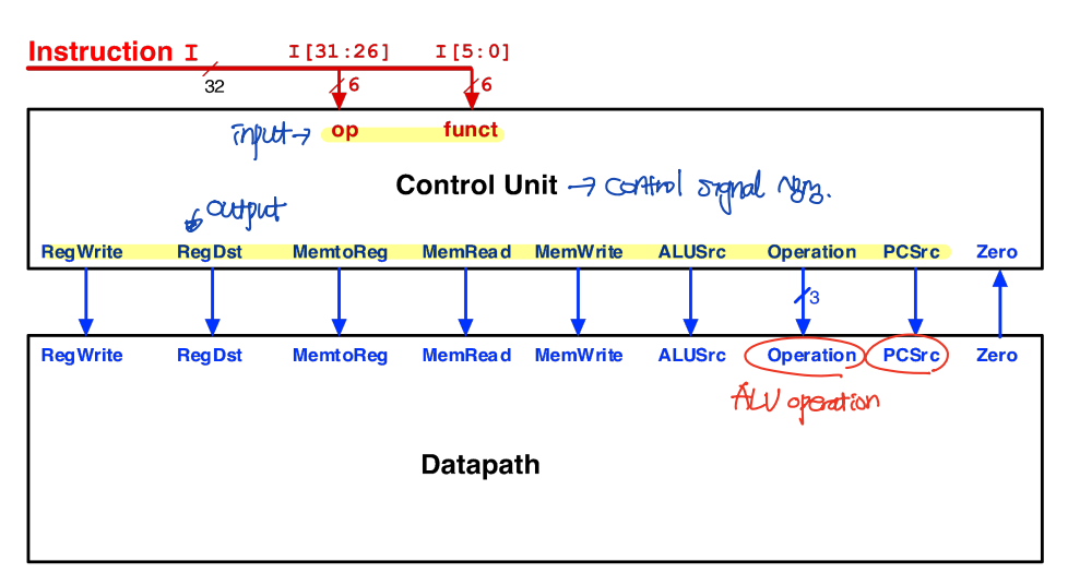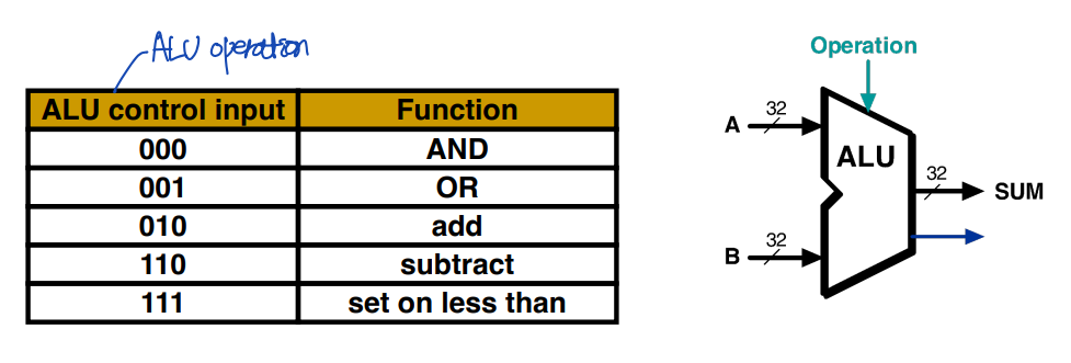 - Zero: ALU subtraction 값이 0이면, Zero = 1;