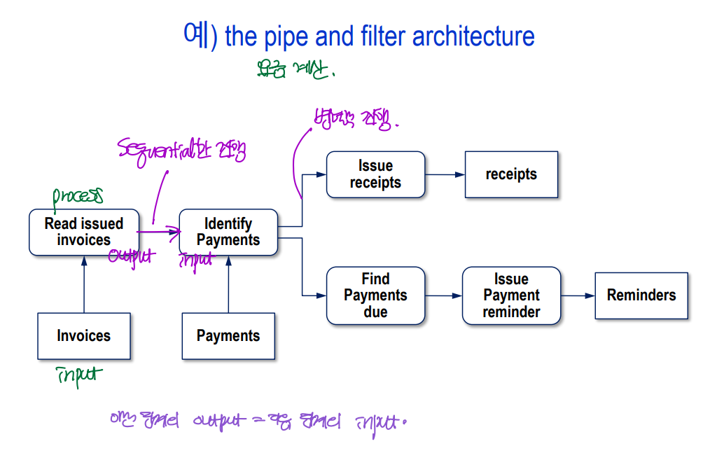 대화식 시스템은 사용자의 입력에 따른 반응이 필요한데, pipe and filter architecture에는 중간 대기 시간이 없기 때문에, 사용자의 반응에 따라 구분해서 동작하기는 어렵다.