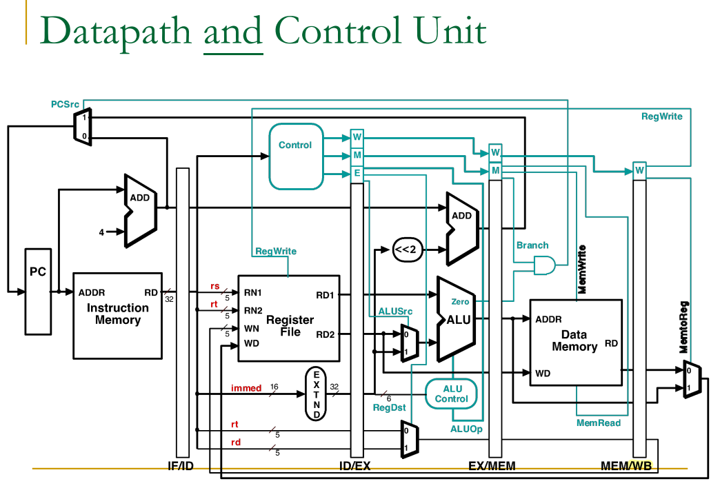 예) Single Memory for instructions(IF; Instruction Fetch) and data(MEM; Memory access).