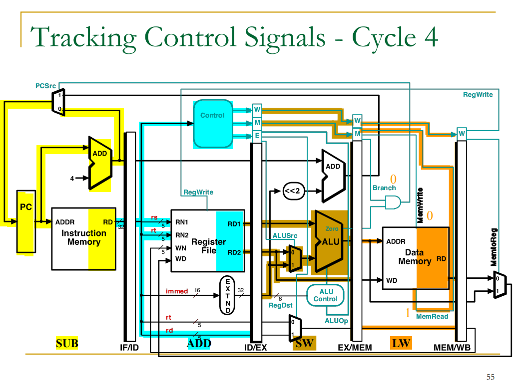 따라서, add의 WB stage 다음에, sub의 ALU stage가 나올 수 있다. --> 2 clock cycle time waiting.