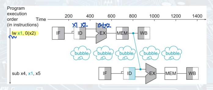 : lw와 같은 경우에, EX 단계 이후 MEM 단계에서 메모리에서 값을 읽어와야 하기 때문에, 1 clock cycle waiting은 필연적이다.