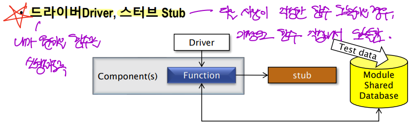 - 스터브(Stub): 다른 사람이 작성한 함수를 호출해야 하는 경우, 가상으로 함수를 작성하여 호출한다.