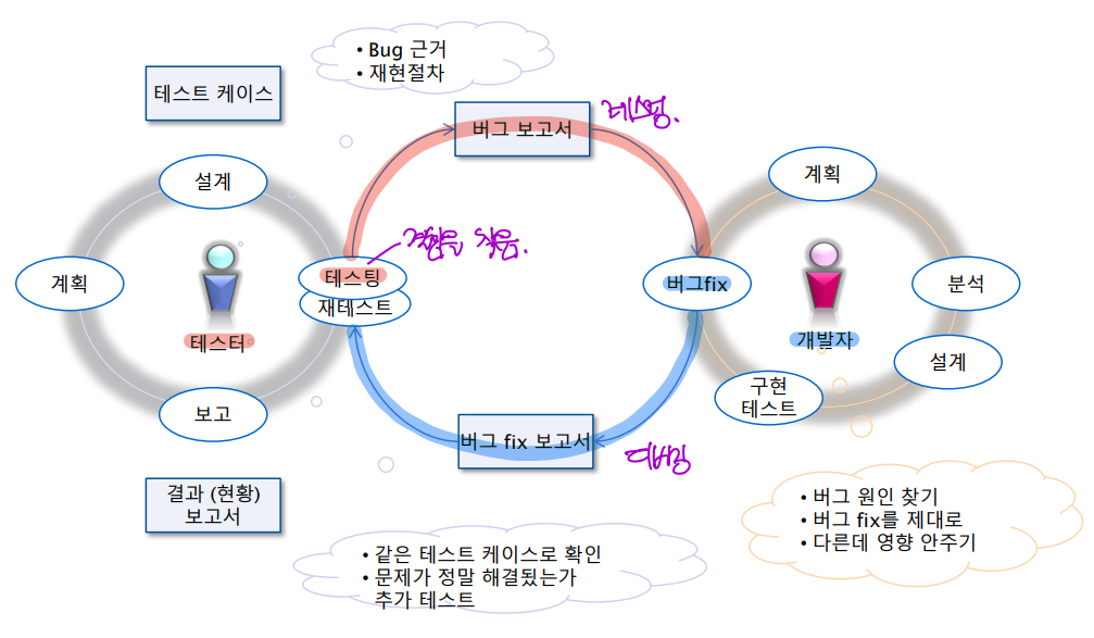 - Testing: bug로 인해 발생한 문제를 찾는다. (by. tester)